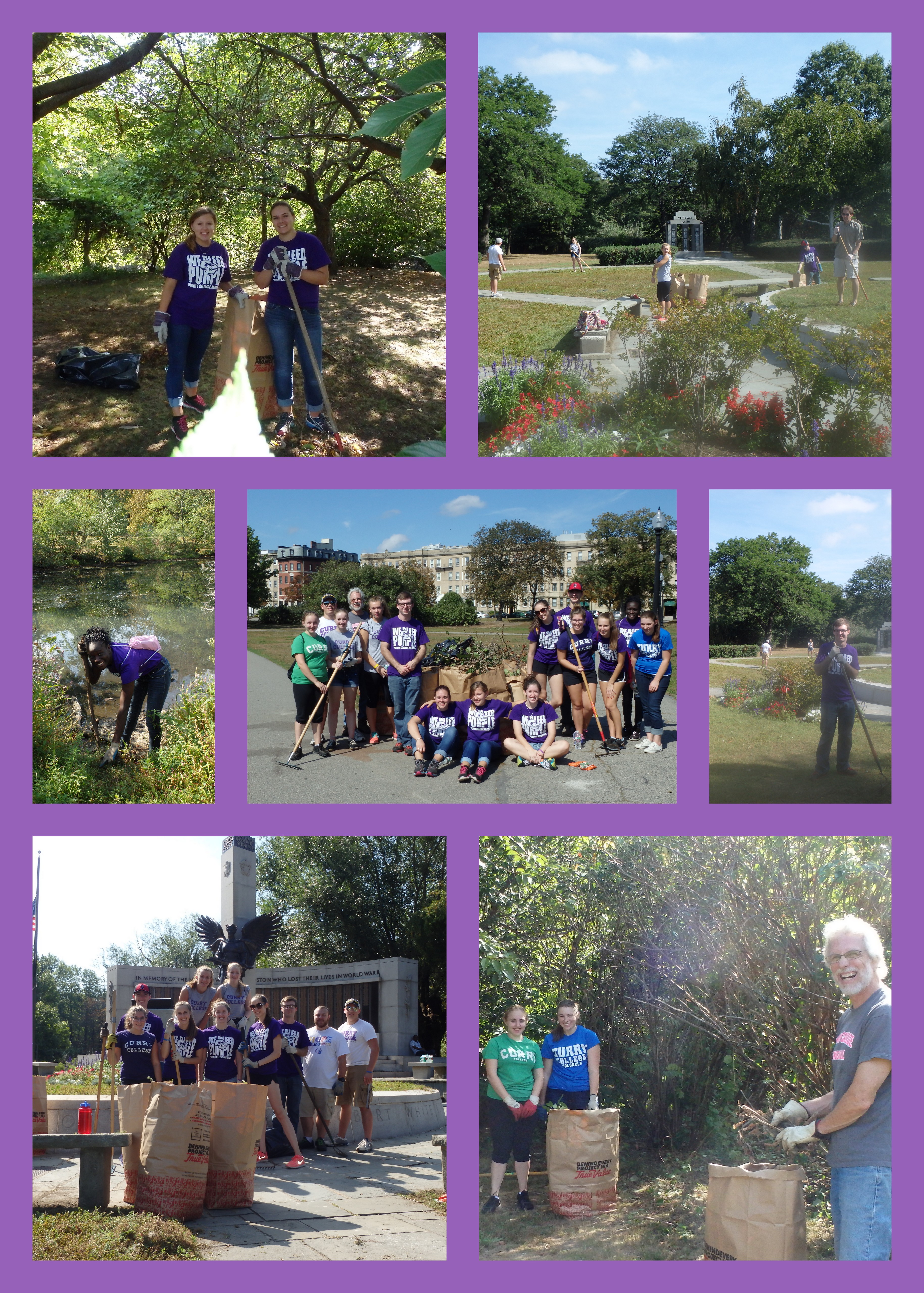 Students, mentors and professors from Curry College’s First-Year Honors program returned to the Back Bay Fens on September 19th to rake, week, prune and clean the parks.