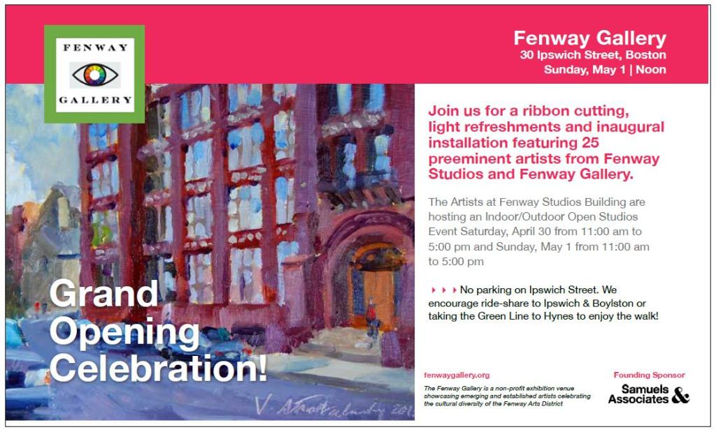 Fenway Studios will be hosting a Grand Opening of Fenway Gallery at Fenway Studios with two days of festivities: